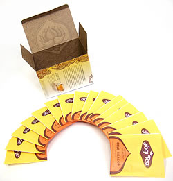 パッケージのアップ。目でも癒されます。ヨギティによっては、オーガニックの原材料を使用しています。