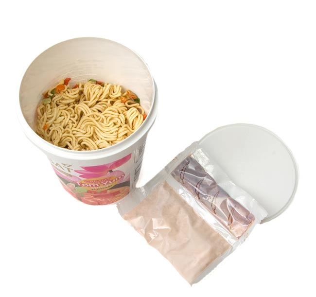| 原材料 | 油揚げ麺(小麦粉、植物油脂、タピオカでんぷん粉、食塩、食品添加物)調味料(エビエキス、クリームパウダー、砂糖、食塩、チリパウダー、乾燥ねぎ、アミノ酸、酸味料、固化防止剤)ペースト(植物油脂、ニンニク、ねぎ、レモングラス、チリ、ガランガー、カフィアライムリーフ、パプリカオイル)乾燥人参、乾燥ねぎ |