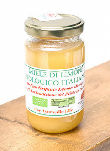 レモンの花のはちみつです。非加熱でハチミツ本来の栄養と味をお届けします。火を入れていないはちみつは、アーユルヴェーダに最適です。
