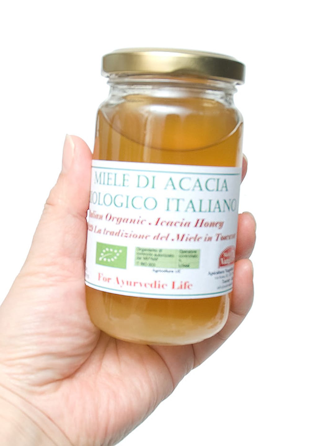 ご存知アカシアの花のはちみつです。非加熱でハチミツ本来の栄養と味をお届けします。火を入れていないはちみつは、アーユルヴェーダに最適です。