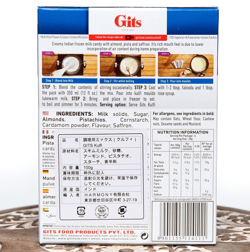 インドのアイスクリーム クルフィの素 - KULFI Mix 【Gits】 x 9個