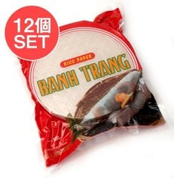 こちらの商品はお得な12個セットです。送料無料で、かつ単品でご購入いただくよりも合計で220円、お得なお値段になっています。こちらは日本でも広く親しまれているベトナム料理、ゴイ・クォン(生春巻き)やチャーズォー(揚げ春巻き)を作るためのライスペーパー。22cmの丸型で使いやすいレギュラーサイズ。