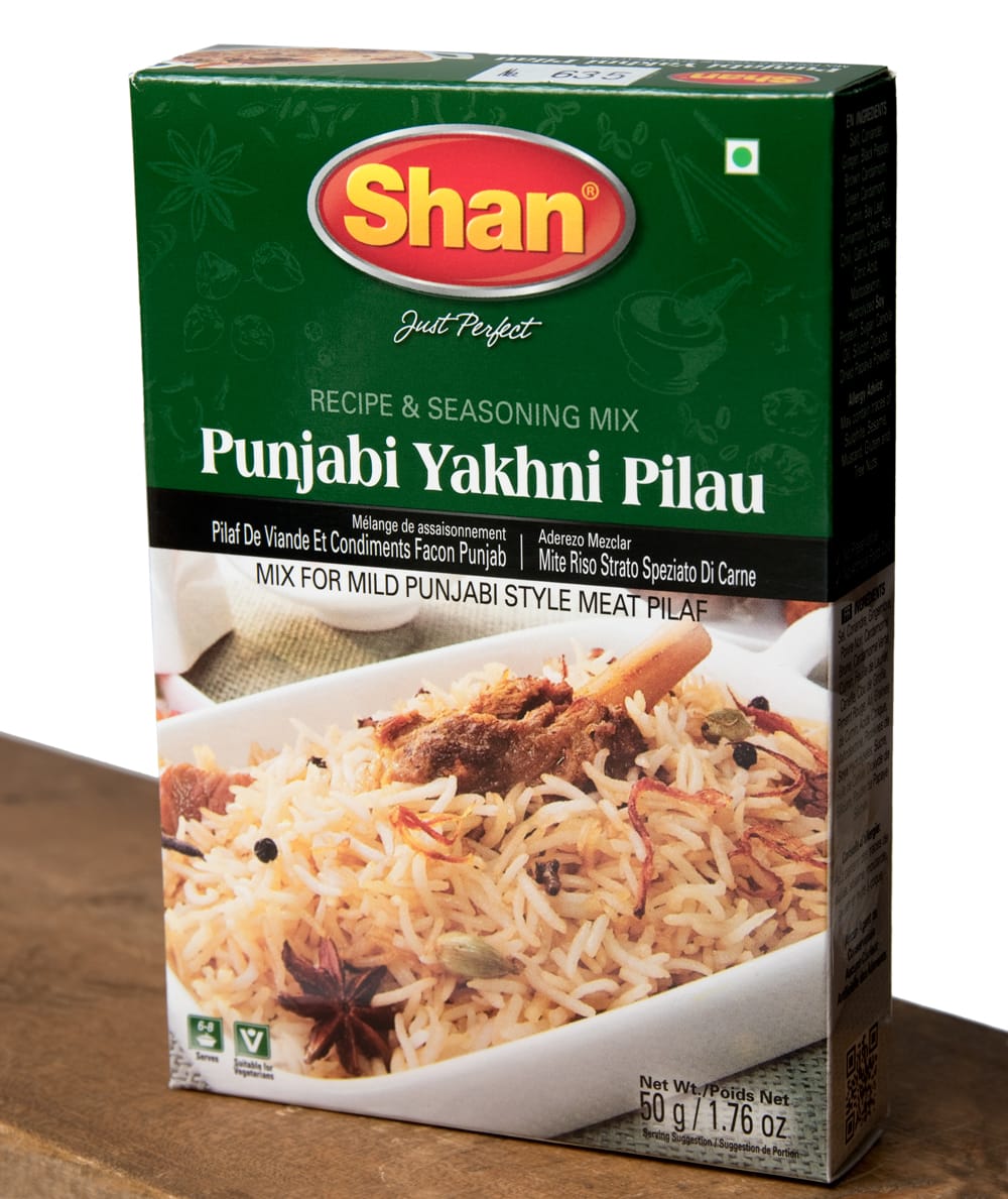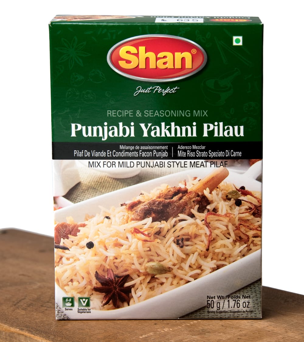 パキスタンのプラオ(スパイスを使った炊き込みご飯)が簡単に作れるスパイスミックスです。ヤクニとはお肉からでる肉汁(スープ)のこと。美味しさに定評あるShan社秘伝のスパイスの配合を是非、お試しください。■外箱が潰れていることがあります。すいません。