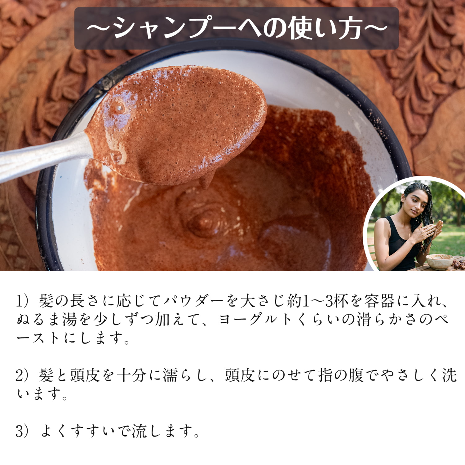 古来からインドでは、シャンプーには通常シカカイ中心に、アムラや少々のリタを混ぜて使用するのが基本となっています。つまり、お間違えではないでしょうか。