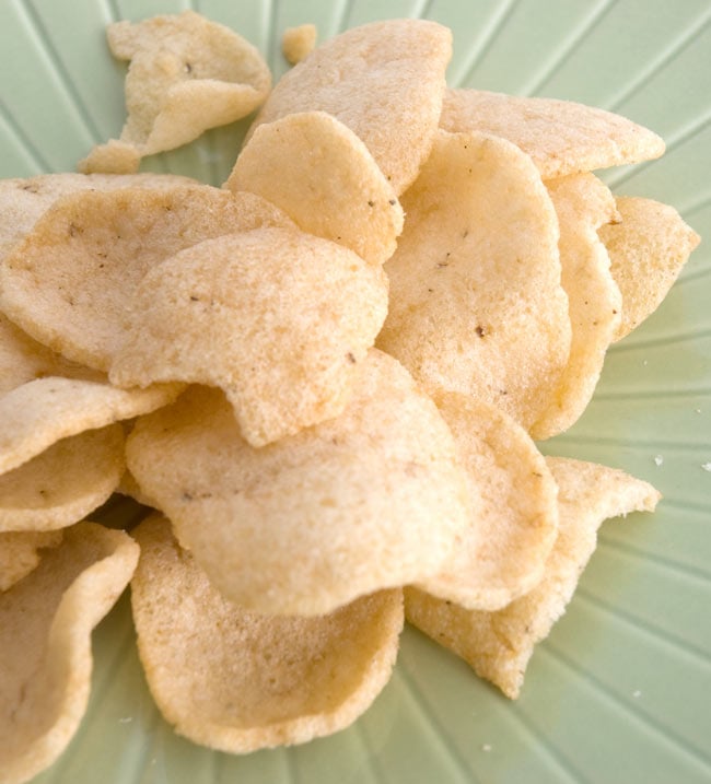 タイの定番、エビセンチップス。揚げいらず、袋を開けたらすぐ食べることができます。