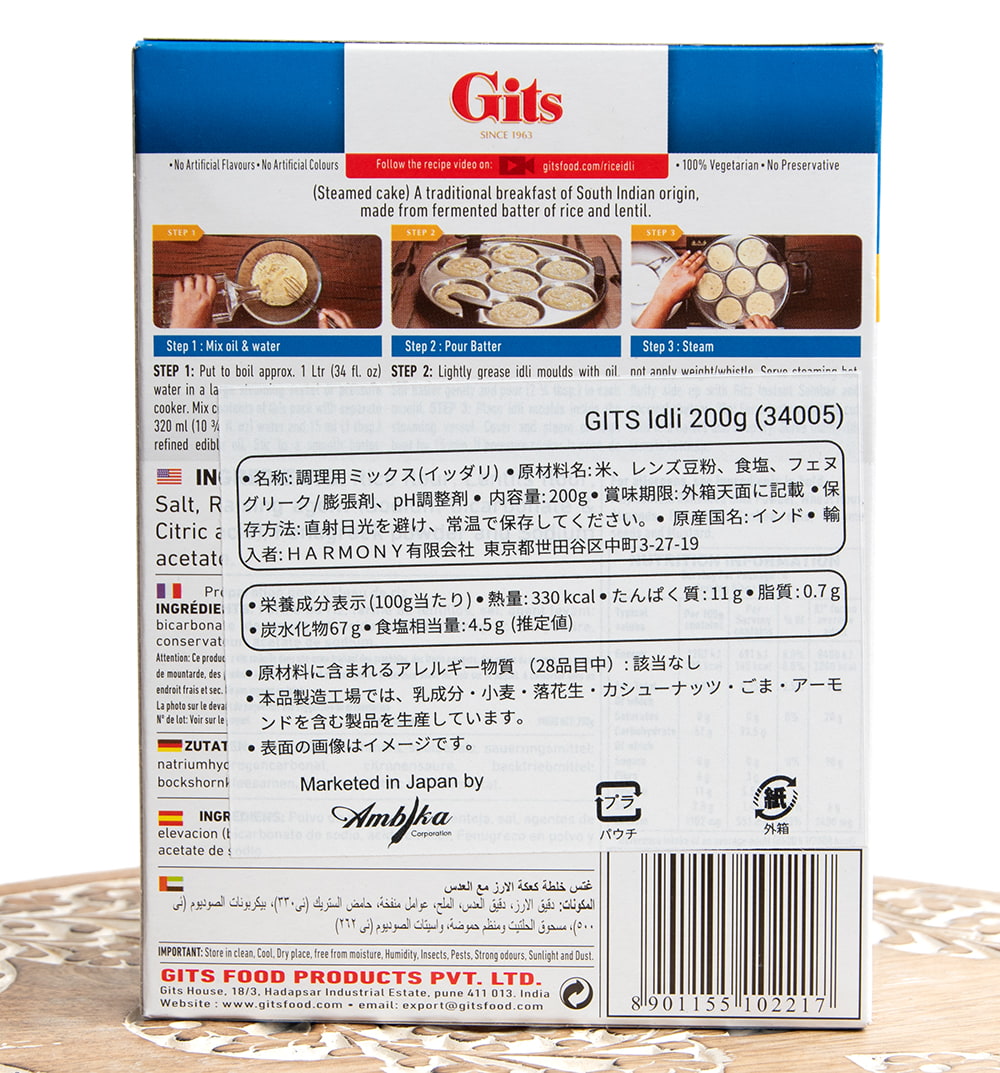 インドの軽食 ライス イドリーの素 - RICE IDLI Mix 【Gits】 x 6個