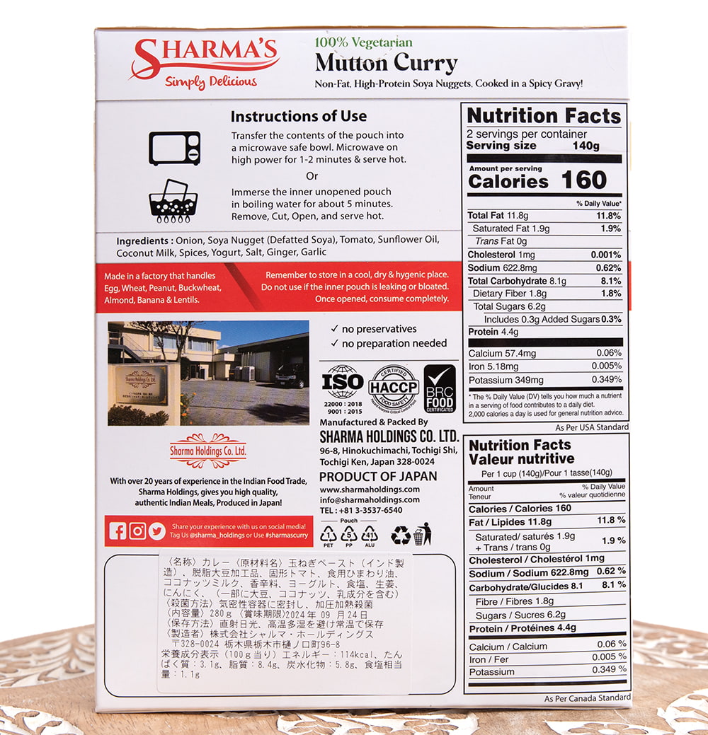100% Vegetarian Mutton Curry - ベジタリアンマトン[SHARMA'S] - 280g 2人用 通販店