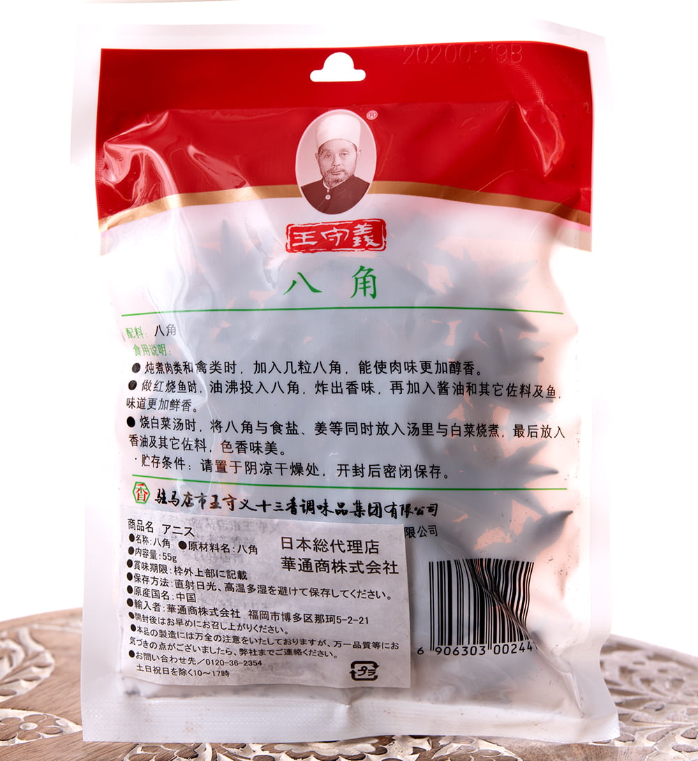 ほのかに甘い香りが特徴のスターアニス。しばしば中華料理に用いられることでも有名です。実の形は8つの角を持つ星形をしており、セリ科のアニスに似た良い香りを放ちます。中華料理、インド料理、マレーシア料理、インドネシア料理、ベトナム料理などに用いられます。中華料理(特に四川料理)では豚の角煮などの煮込み料理やデザートに使われます。他のスパイスと混ぜて「五香粉」としても使われます。