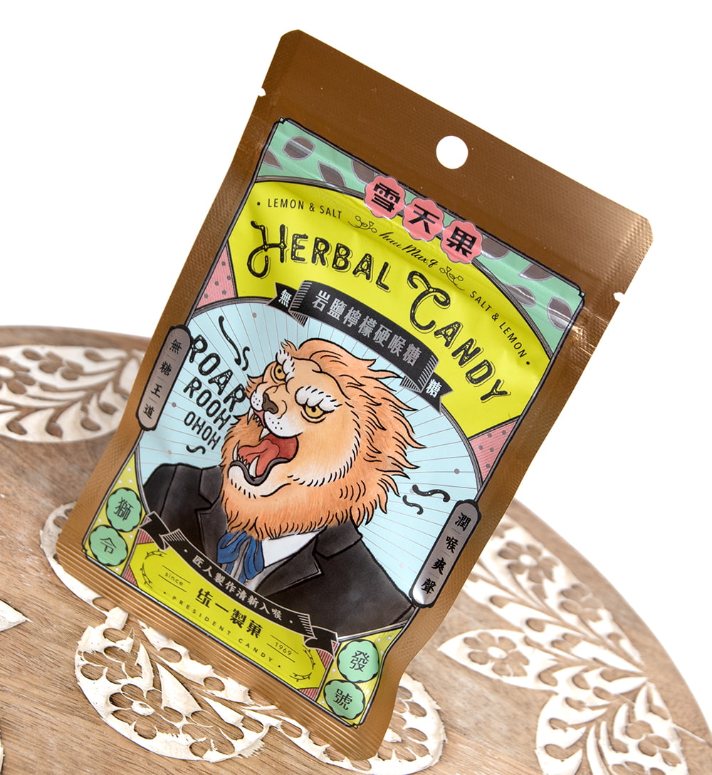 岩塩、びわの葉、羅漢果、プラム、さんざし、陳皮、リコリスやシナモンなどの台湾ハーブを使用した喉に優しいソルト&檸檬味ののど飴です。