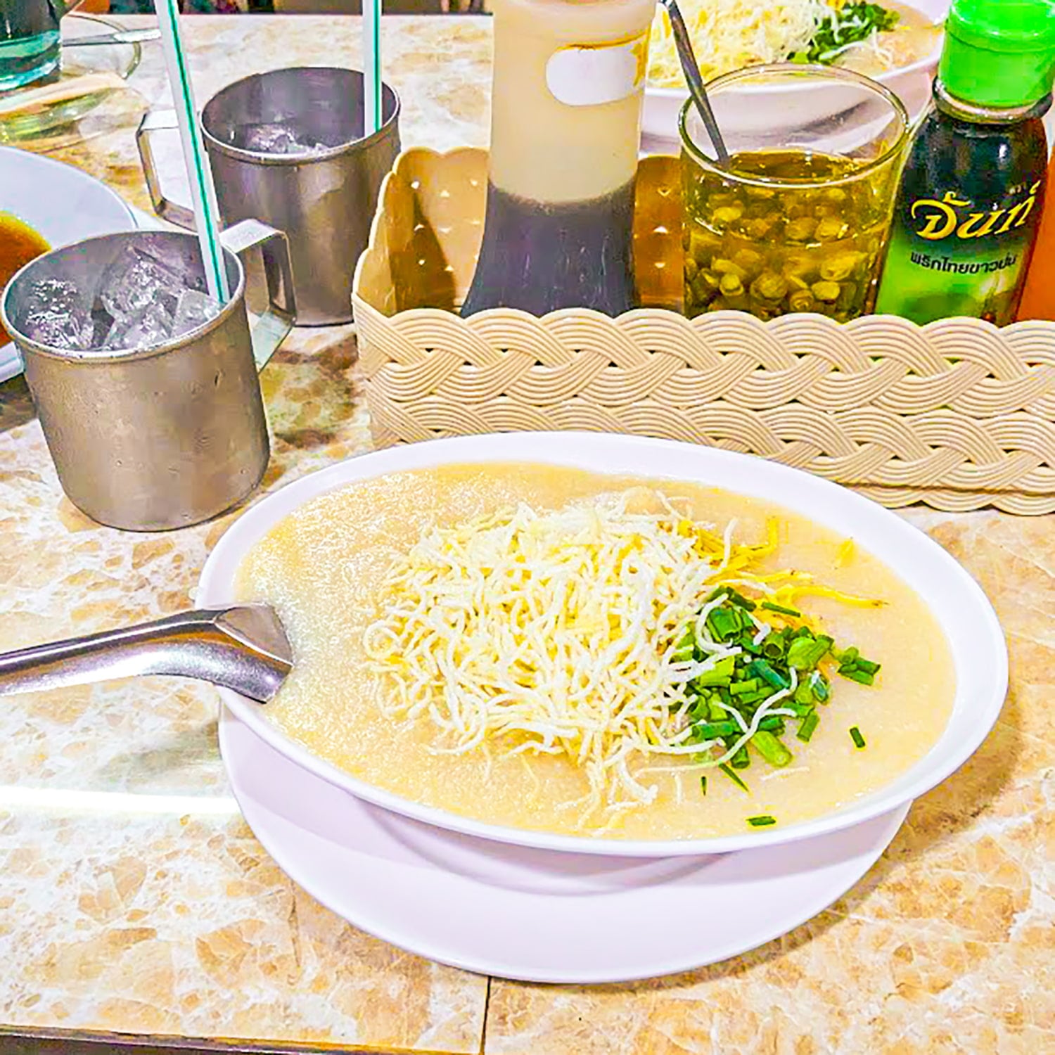 下の写真は、買付スタッフが、現地タイで食べたジョークの写真です。