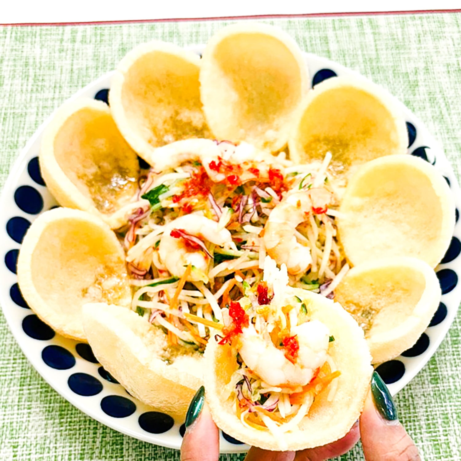 ベトナムで親しまれている、ちょっと珍しいマンゴークラッカーです。ほんのり甘い香りが広がりますが、強すぎないやさしいマンゴー風味で、飽きずに楽しめます。 揚げるとサクサクと軽い食感になり、つい手が止まらなくなる美味しさです。おやつにはもちろん、お酒のおつまみにもおすすめです。現地ではサラダのトッピングや軽食としても親しまれています。