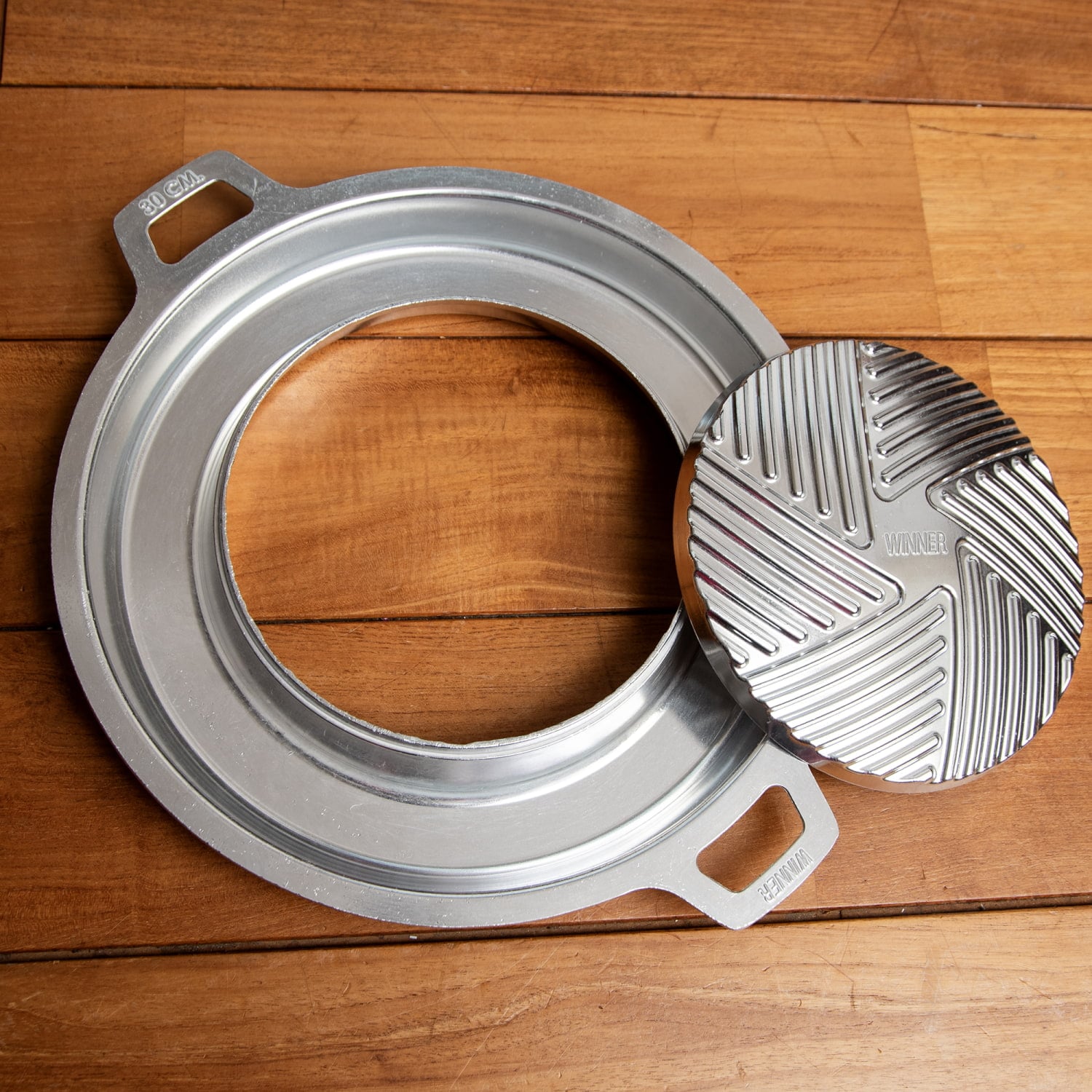 ![[30cm・着脱式]高品質アルミ製 ムーガタ タイの焼き肉しゃぶしゃぶ鍋 焦げ付きにくい 3 - 中央部はこのようになっています。ミゾが彫ってあります](https://www.tirakita.com/food3/Photos/id_tblwr_1623_3b.jpg)