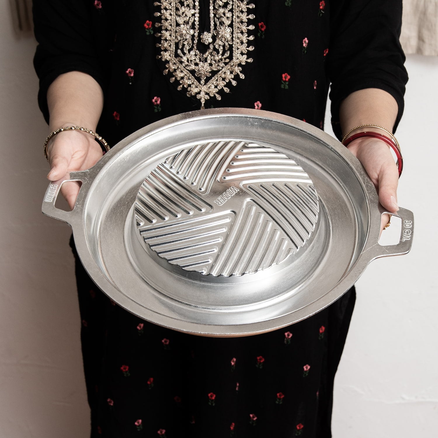 [30cm・着脱式]高品質アルミ製 ムーガタ タイの焼き肉しゃぶしゃぶ鍋 焦げ付きにくい
