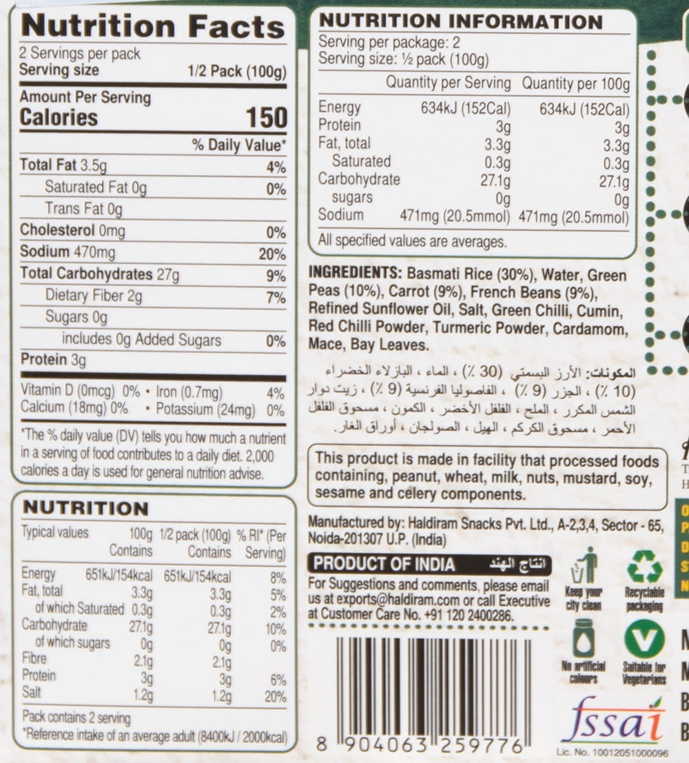 このハルディラムのベジタブル プラオは、ベジタリアンの方でも安心のベジタリアングリーンマーク付き。