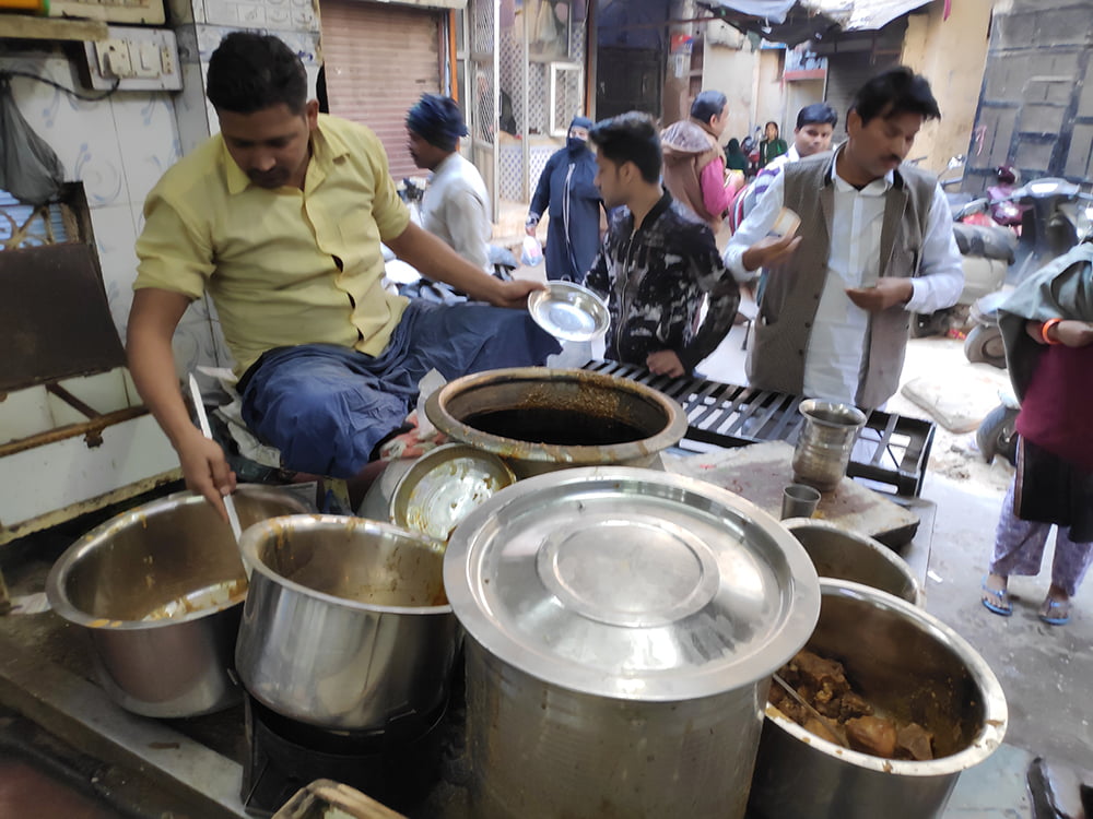 ナハリ、もしくはニハリと呼ばれる、イスラム教徒のカレーです。猥雑としたデリーの最深部であるジャマーマスジッド周辺には名門のカリムホテルを中心として、この様なムスリム向けのカレーを出すお店が点在しています。ムスリム向けのカレーは大きな壺型の鍋で、油とスパイスと共に具材をぐつぐつと煮込んで作られる、煮込み系カレー。ティラキタブログでもインド初心者お断り!? オールドデリーの名店で旨みが油に凝縮されたニハリを食すと言う記事でデリーのニハリを紹介させていただいております。