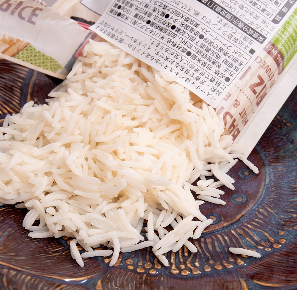 ありそうでなかなかなかった、レンジでチン♪してすぐに食べられるバスマティライスです。パキスタン製のバスマティライスを輸入し、タイで加工されています。