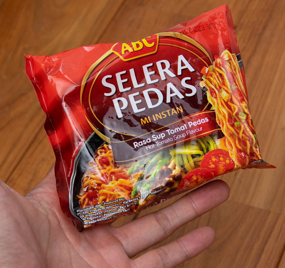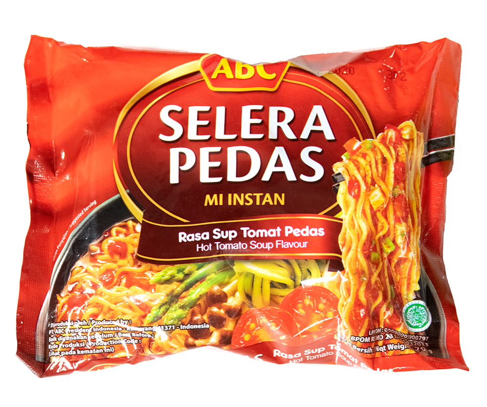 こちらの商品はお得な34個セットです。送料無料で、かつ単品でご購入いただくよりも合計で240円、お得なお値段になっています。インドネシア発、【ABC】のインスタントラーメン 辛ロトマト味です。