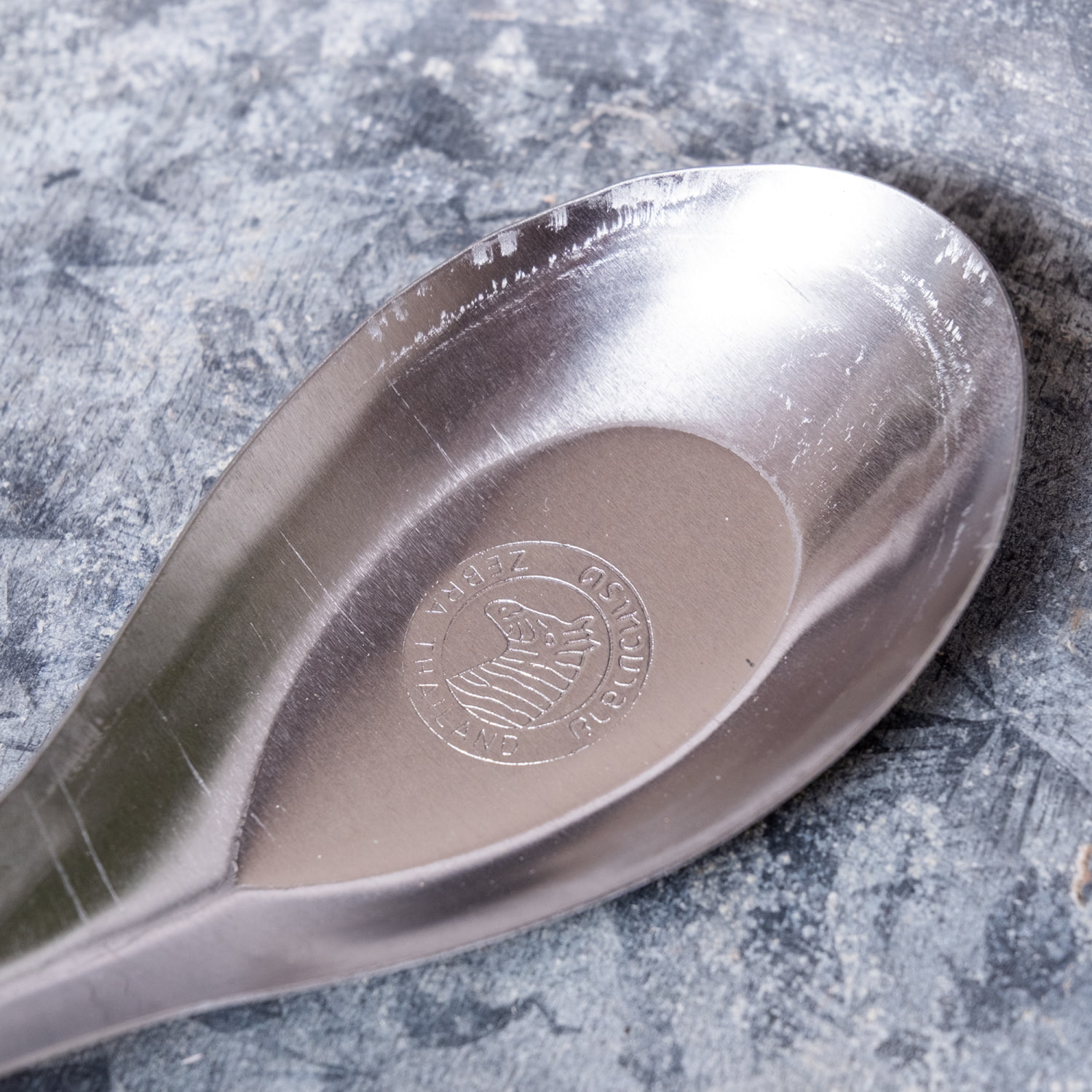 レンゲの中心には、しまうまのマークが付いています。THAILANDと書かれていますが、実際はベトナムのレンゲです。タイのZEBRAブランドではないのでご注意ください。付いているのはベトナムのしまうまマーク!とてもアジアらしい雰囲気のレンゲです。