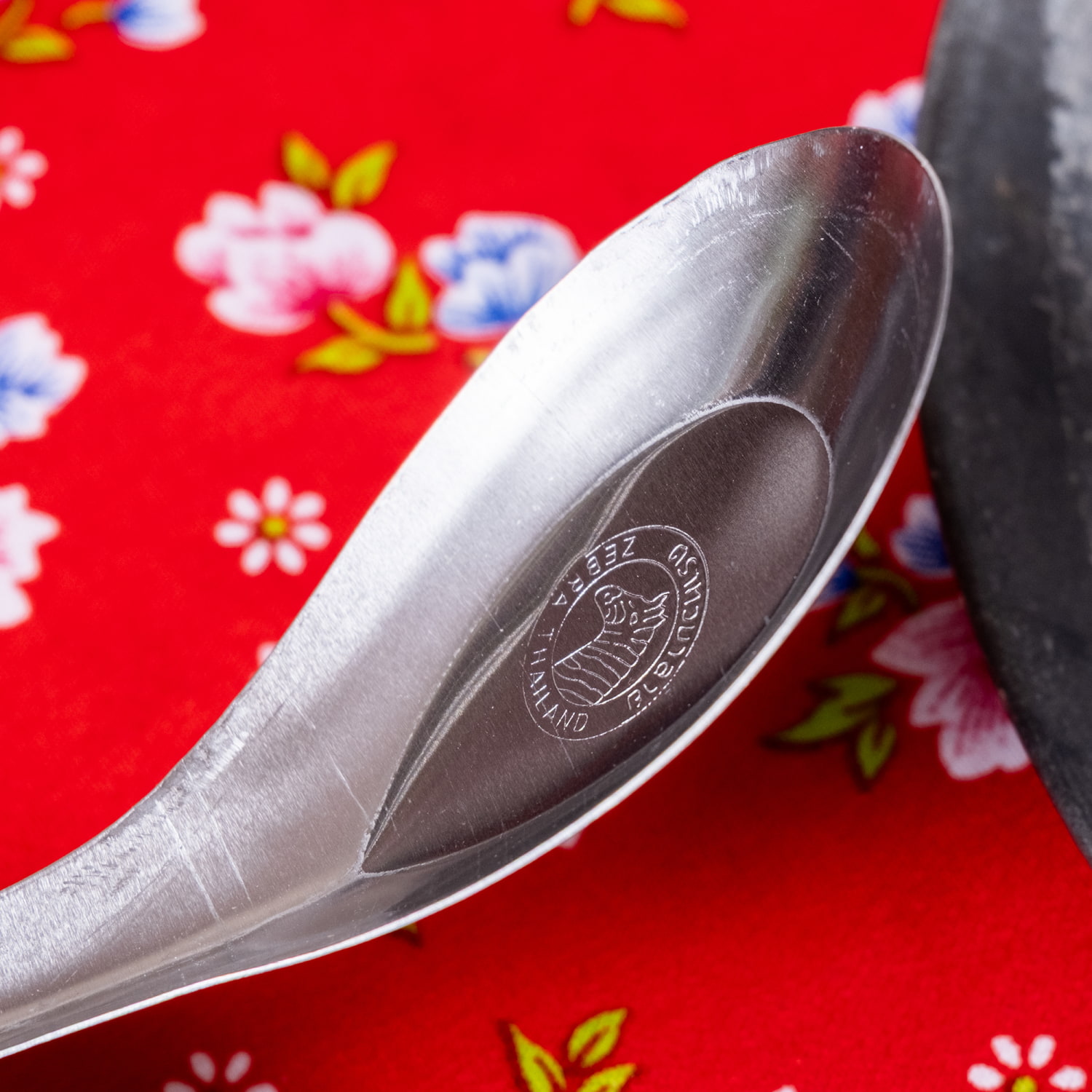 レンゲの中心には、しまうまのマークが付いています。THAILANDと書かれていますが、実際はベトナムのレンゲです。タイのZEBRAブランドではないのでご注意ください。付いているのはベトナムのしまうまマーク!とてもアジアらしい雰囲気のレンゲです。