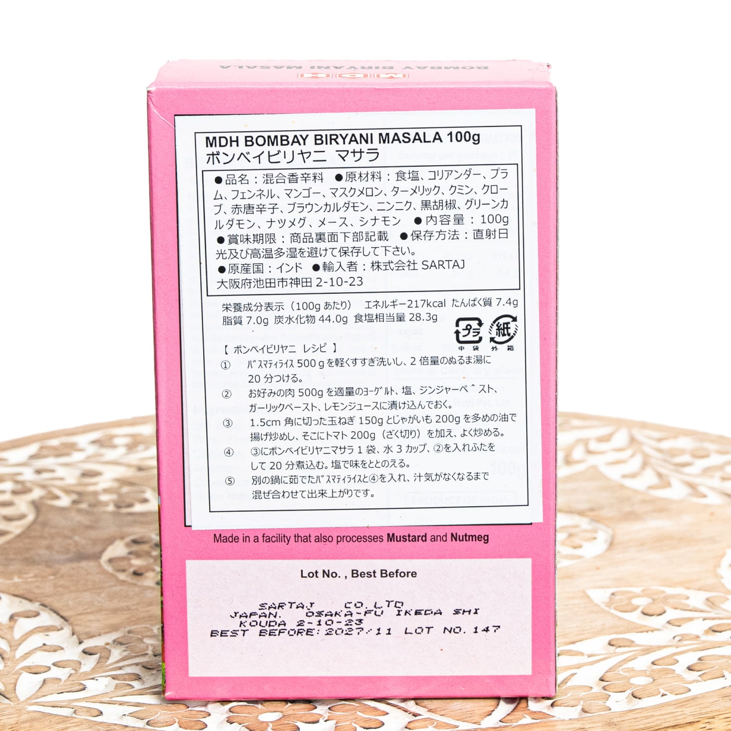 100gの小サイズは使い切りやすく、スパイス初心者の方にも試しやすい分量です。常備しておけば、思い立ったときにいつでも本格ビリヤニが楽しめます。ぜひご家庭でお楽しみください。
