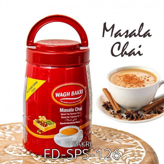 チャイ用紅茶 スパイス入り マサラチャイ Masala Chai 250g 大ボトル【WAGH BAKRI】(FD-SPS-126)の写真です