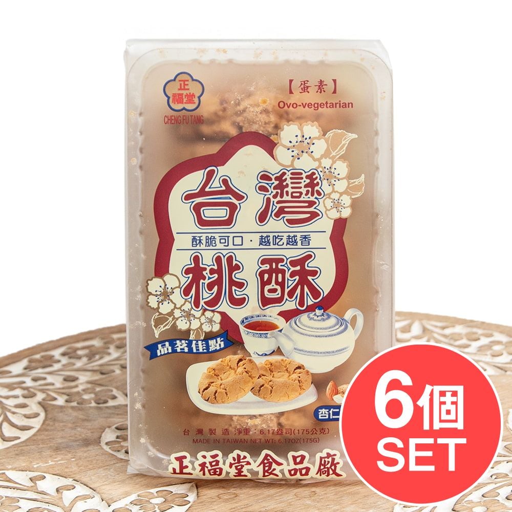 「桃酥(タォースゥー)」は、ザクザクとした食感とアーモンドの香ばしさが特長の中国伝統の焼き菓子です。素朴でやさしい甘さが広く親しまれています。本商品は、台湾・台中の老舗ベーカリー正福堂が、創業以来のレシピと製法で丁寧に焼き上げています。たっぷりのアーモンドを使用し、ほろりと崩れる軽い口当たりとコクのある味わいに仕上げています。