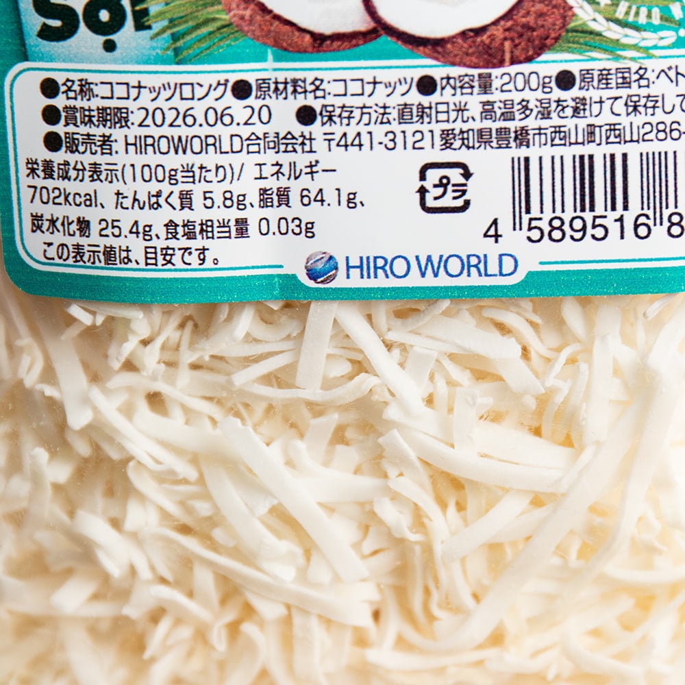 ココナッツを荒く削った粗挽きココナッツ。「ココナッツ・ロング」「ココナッツ・スレッド」「ココナッツ・シュレッド」などの名前でも知られています。 甘い香りとザクザクした独特の食感が愛されています。 お菓子作りにはもちろん、カレーに入れたり、ヨーグルトに振りかけてもおいしくいただけます。■オススメレシピ