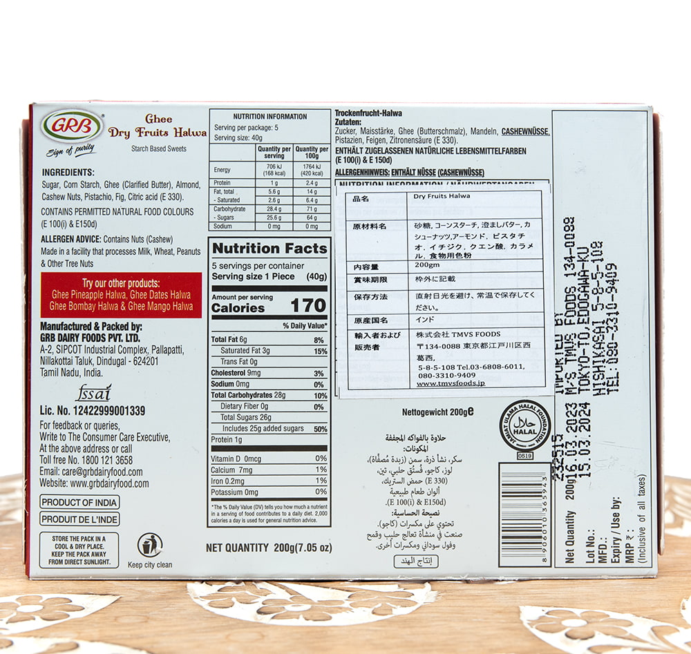 【6個セット】どっしりとした味わいのインドのお菓子 ギー ドライフルーツ ハルワ - Ghee Dry Fruits Halwa 200g【GRB】 通販店