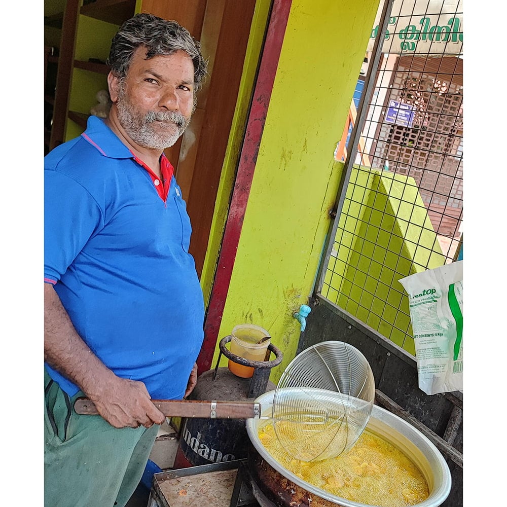 南インドでの屋台のバナナスナック屋さん。
