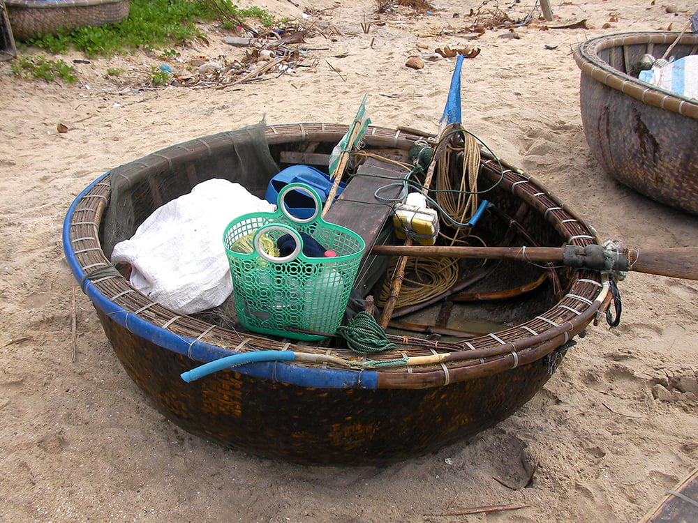 この様な丸い船で漁に出ていました