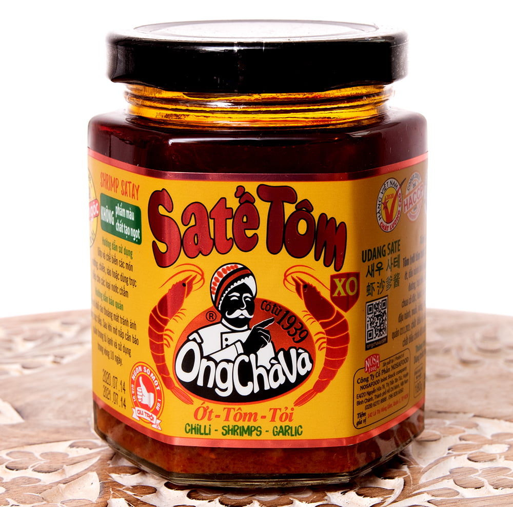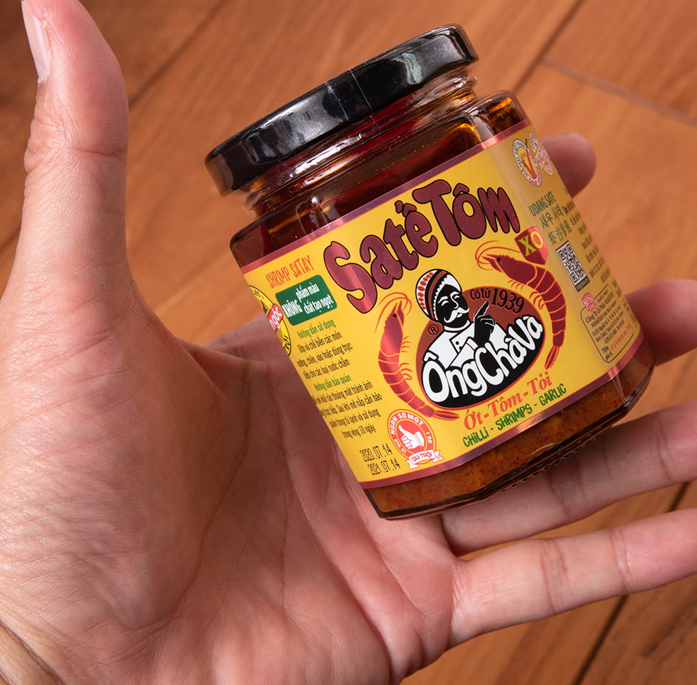 ベトナムの激ウマ調味料で、海老風味のラー油とも言うべき、ベトナムの万能調味料オンチャバエビ入リ サテソースがやってきました!!!エビの旨味とニンニク、爽やかなレモングラスの絶妙なバランスが最高な一品です。インスタントラーメン、フォーや焼きそば、 サラダチキンなどにちょこっと入れるだけでぐっと美味しさがUPします!