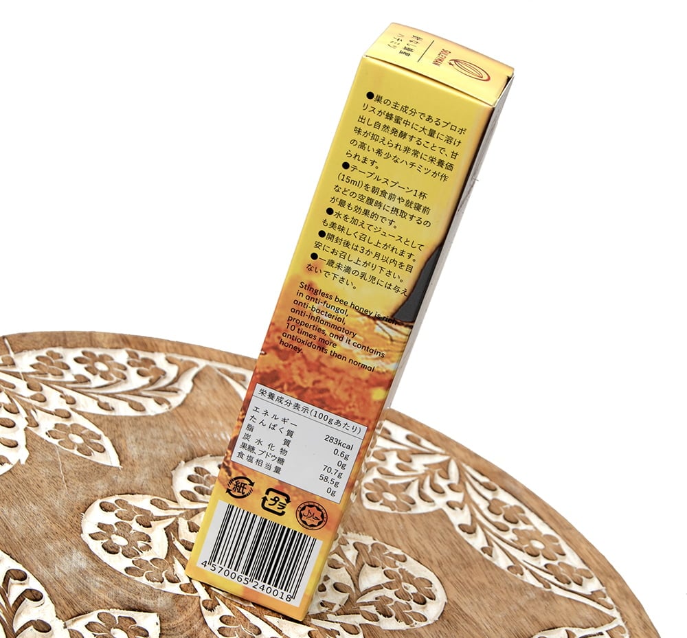 このマドゥケルルは、巣の主成分であるプロポリスがはちみつ中に大量に溶け出し自然発酵したものです。発酵することで、甘みが抑えられ、非常に栄養価の高い希少なはちみつが作られます。通常のはちみつに比べて、抗酸化物質が10倍含まれています。