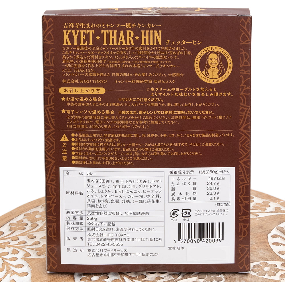 保存料、化学調味料を使用せず 一切の妥協なく作り上げた本格ミャンマー式チキンカレー KYET THAR HIN。 レトルトカレーの常識を超えた自慢の味わいをお楽しみください。