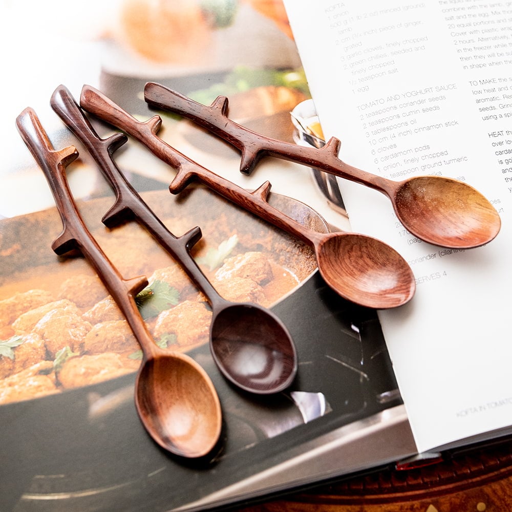 ベトナムの枝デザイン ウッドスプーン 19cm x 4個