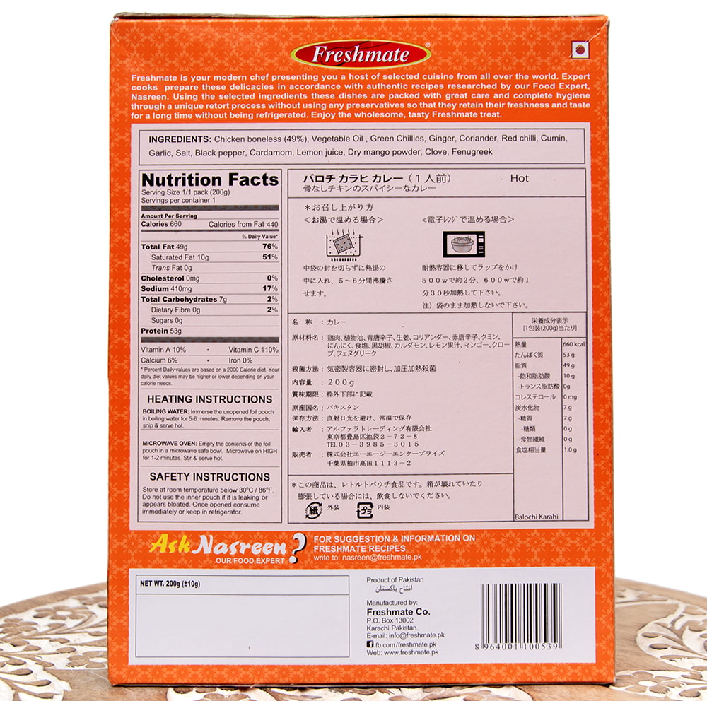 バロチ カラヒ カレー - 骨なしチキンのスパイシーなカレー - Balochi Karahi 【Freshmate】 x 6個