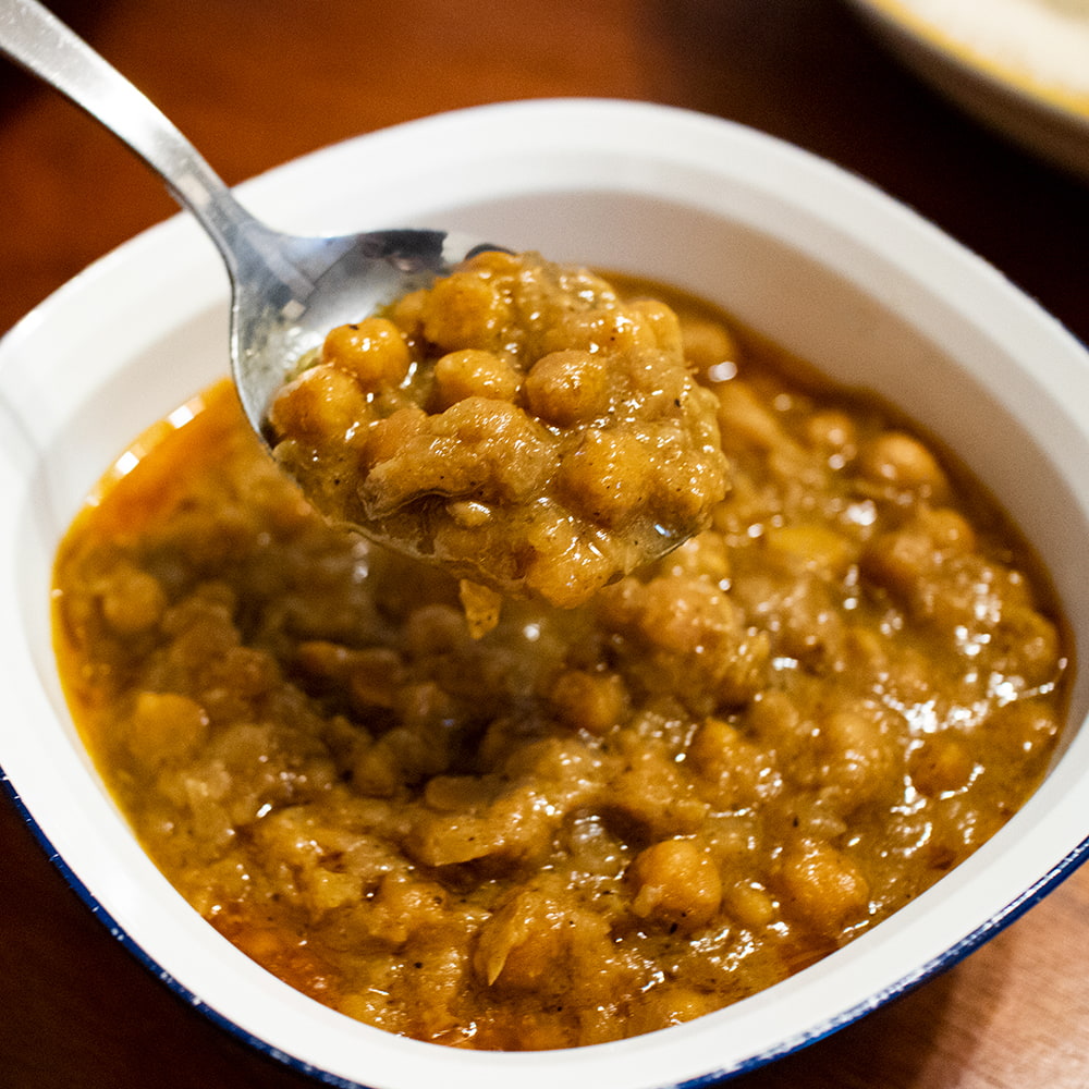 インドやパキスタンでは、ひよこ豆がカレーの具としてたいへん好まれています。私達日本人にはカレーにお豆を入れるという発想がありませんが、彼らにとっては当たり前のこと。ひよこ豆だけでなく、小さなお豆から大きなお豆まで、様々なお豆をカレーの具材として使用します。ひよこ豆のカレーの特長は、ひよこ豆がどちらかと言うと大ぶりのお豆ですので、ふっくらほっくりとしつつ、しっかりとした食感があることでしょうか。