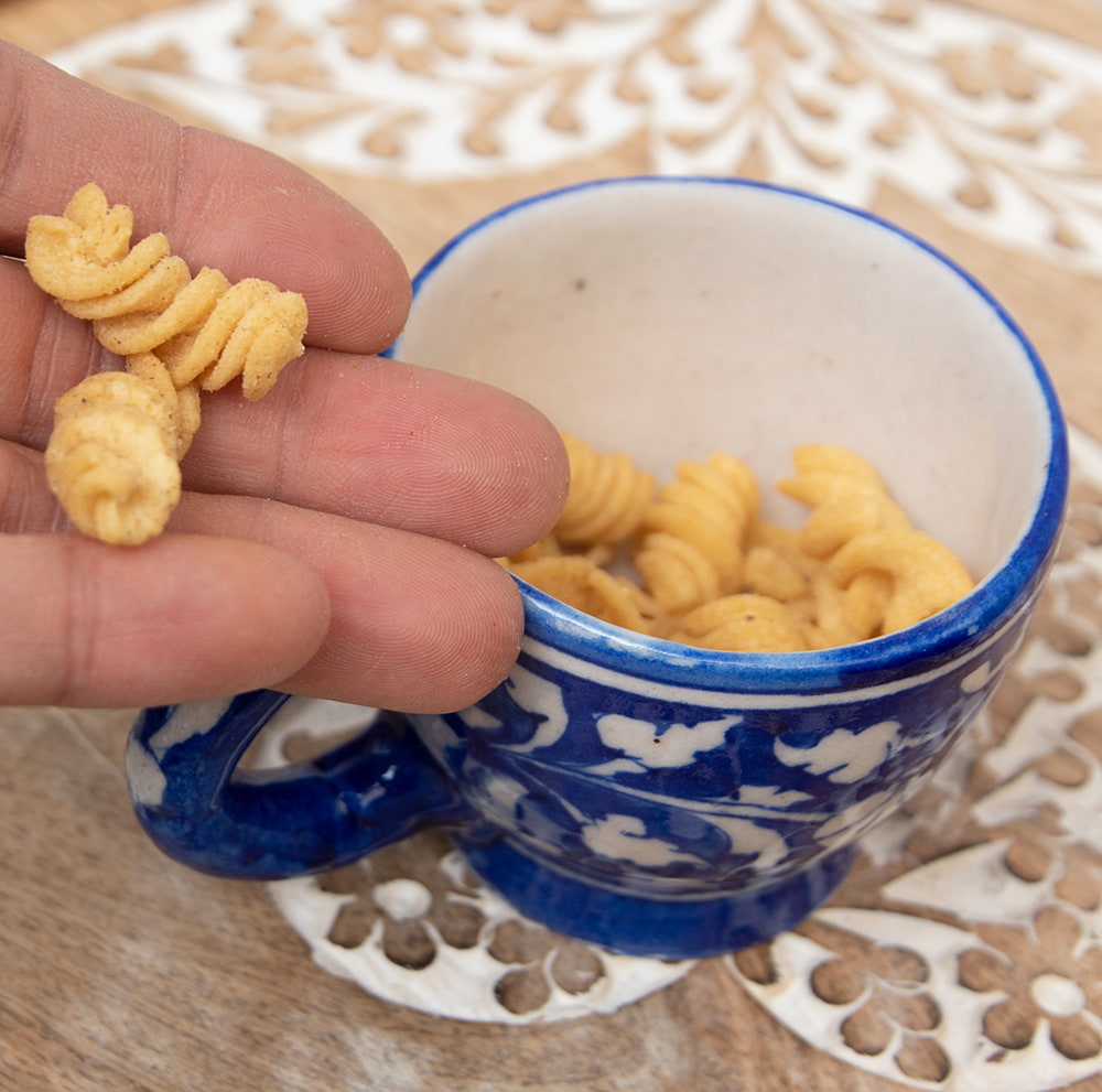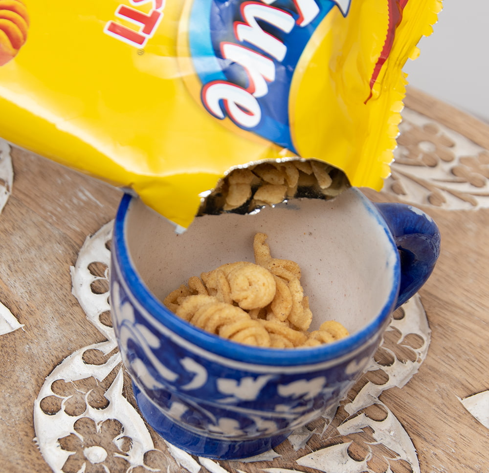 破壊的な中毒性を誇るインドのスナック菓子クルクレに新しいテイストが登場しました!!マカロニの様な形をしていつつ、そのひだひだの中にギュギュギュ!とチーズベースの旨味パウダーが詰まっています。インド製のスナックとはいいつつも、そこまで刺激が強くないので、逆にどんどん食べられてしまいます。