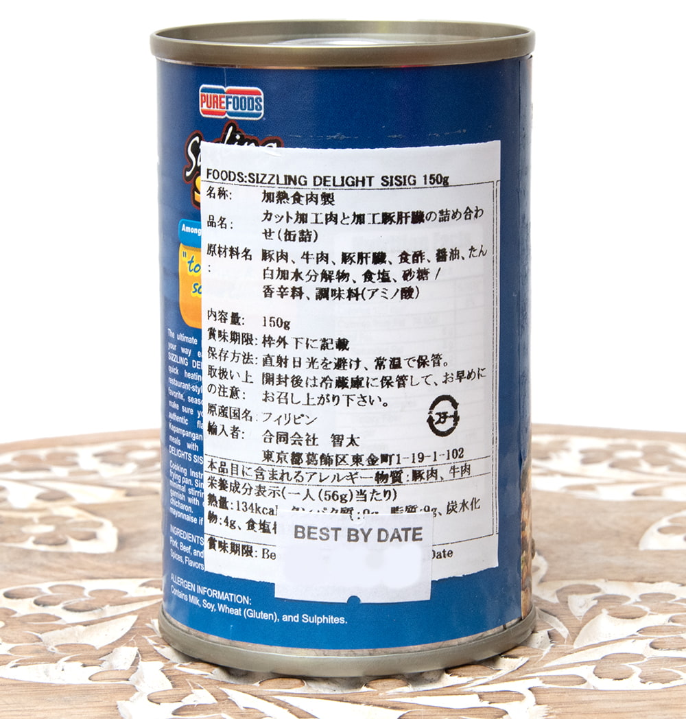 ![【6個セット】フィリピン料理 シシグの缶詰 - SIZZLING DELIGHT SISIG[150g] 4 - 裏面の成分表示です](https://www.tirakita.com/food3/Photos/set_food_766_4b.jpg)