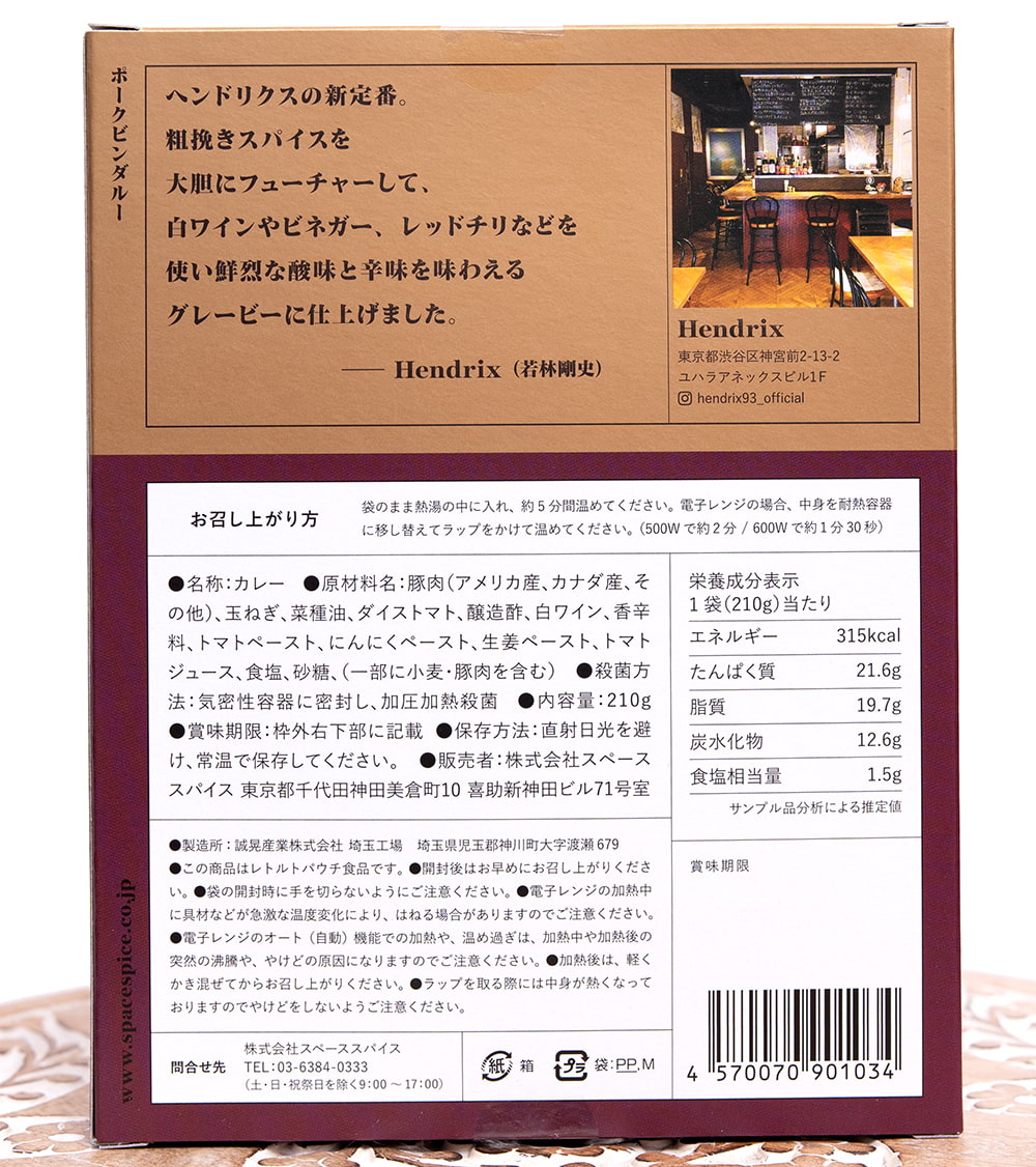 ヘンドリクス - ポークビンダルー【Space Spice 名店コラボシリーズ】 x 5個