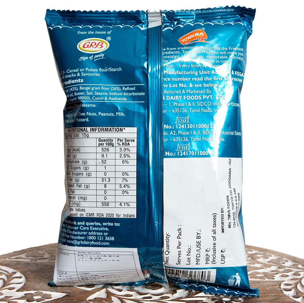 【6個セット】バターとクミンが香るシンプルなお味の南インドスナック - バタームルク Butter Murukku 150g【TOWNBUS】の同一カテゴリ商品