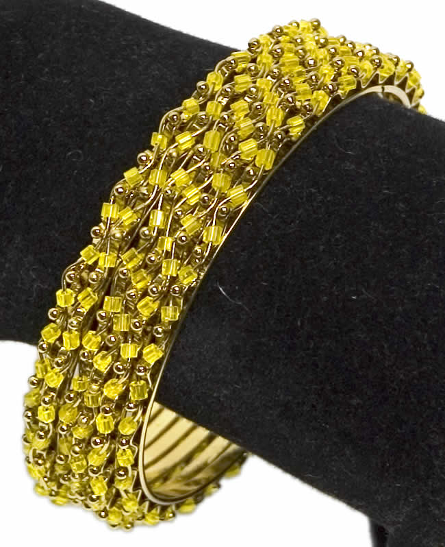 ウェーブ状の金属にカラフルなビーズを通したおしゃれなバングル。毎日の普段使いに、ちょっとしたおしゃれにと、色々なシーンで活躍。他のバングルと合わせて使うとさらにおしゃれです