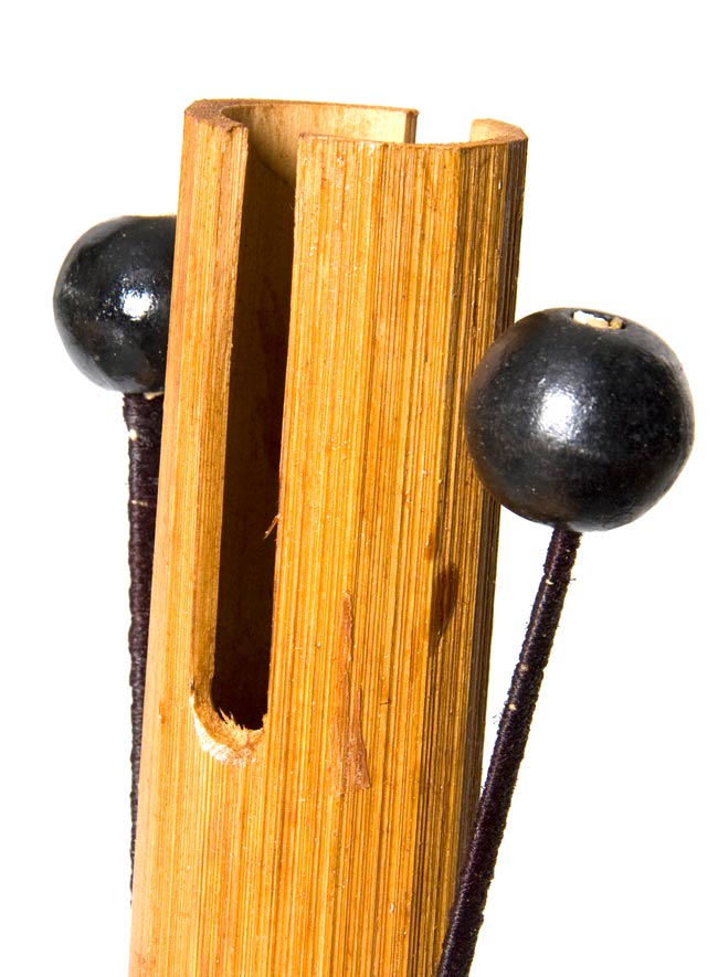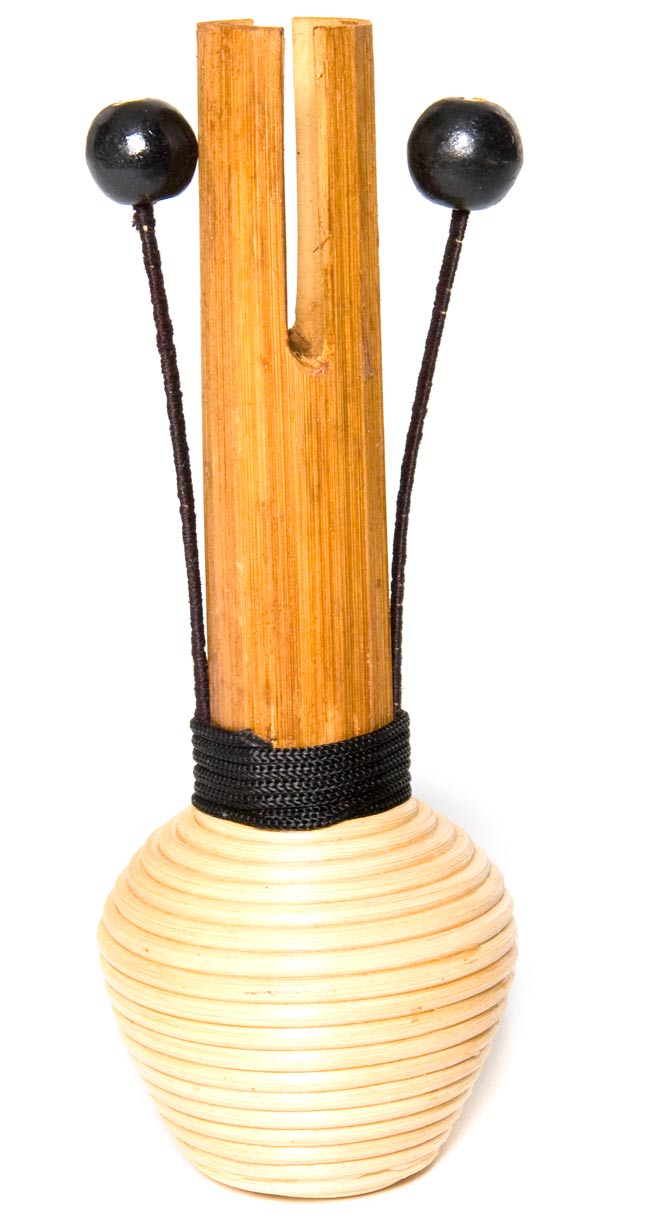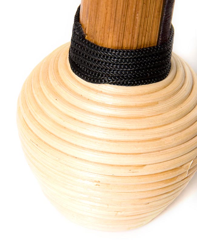 植物を使用した質素な作りなので、音は鈍め、でも柔らかい音になっています。ロープで結んでいるところに布などが引っかかりやすいです。