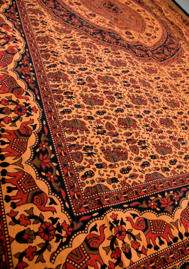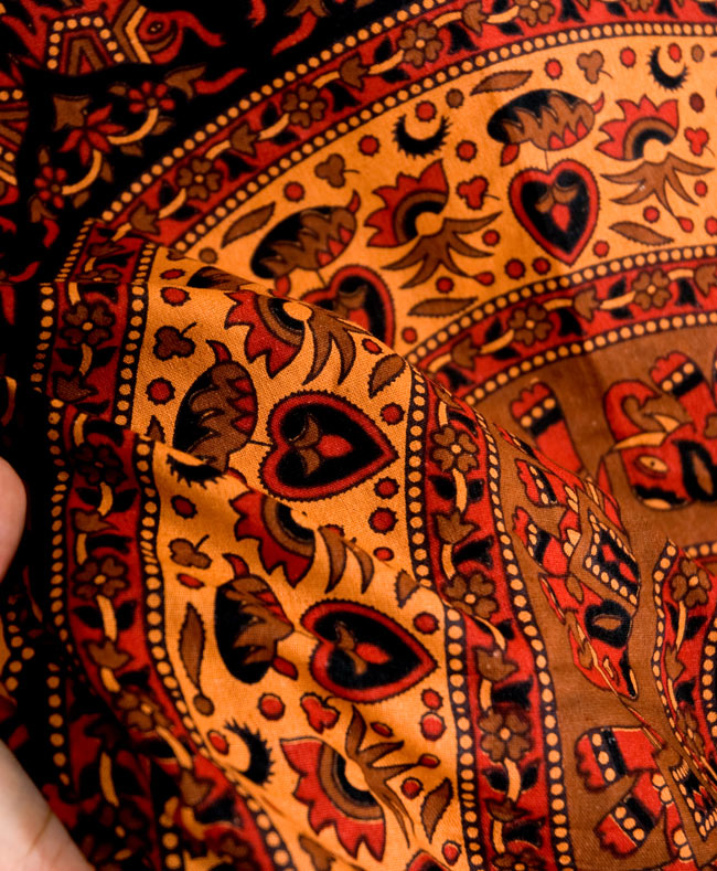 大きな布にとても丁寧に、インド伝統の唐草柄やマンダラ柄、象さんや、お花などがプリントされているので、こちら1枚をお部屋に飾るだけでアジアンなお部屋に大変身!■人の手の温もりを感じる伝統的手法