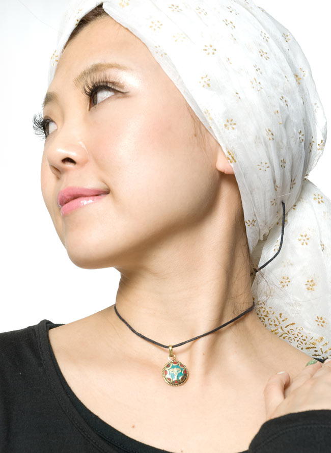 メタリックなプレートに、細かい綺麗な装飾が施されたペンダントトップがネパールよりやってきました。こちらの商品は、ピカピカ輝くプレートにオーン文字や、ブッダアイなど、いろいろな縁起の良い模様が刻まれております。ですのでお手頃価格ながらも、華奢な感じにも見えないのが魅力的ですね。