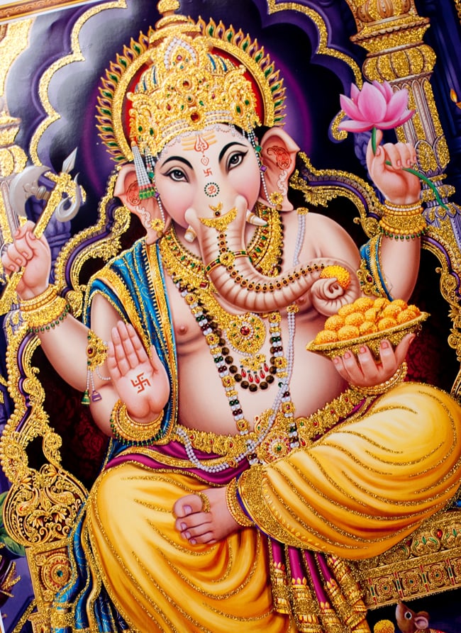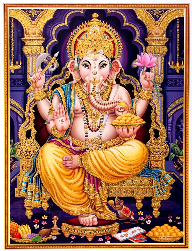 〔約40.5cm×約30.5cm〕輝くラメ入り・インドのヒンドゥー神様ポスター - ガネーシャ 学問と商売の神様 通販店