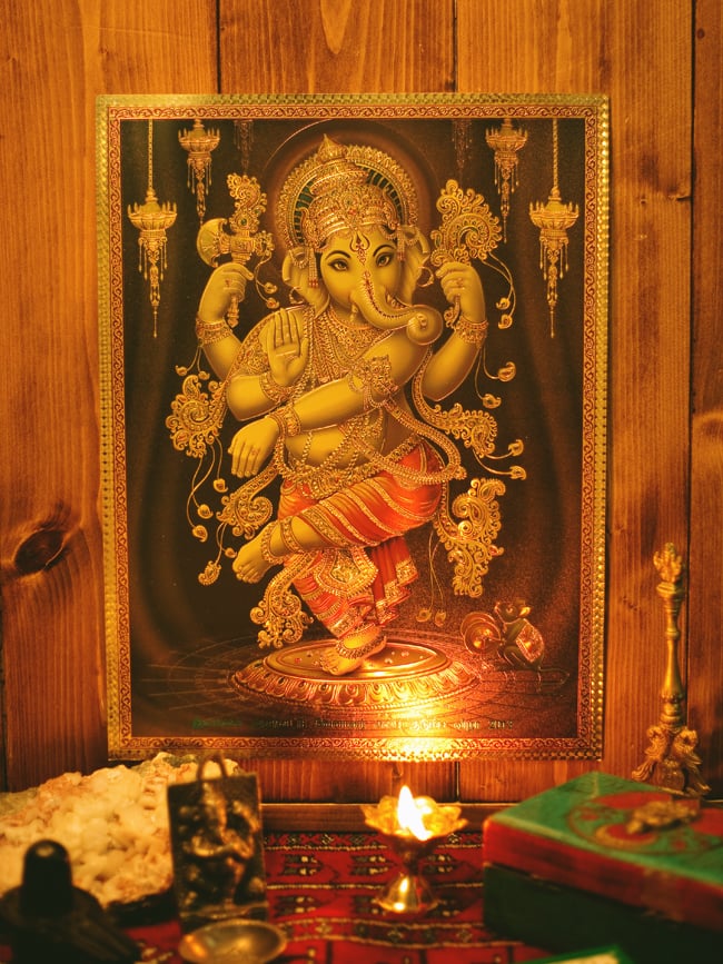 〔約40cm×約30cm〕インドのヒンドゥー神様ゴールドポスター - ガネーシャ 学問と商売の神様 通販店