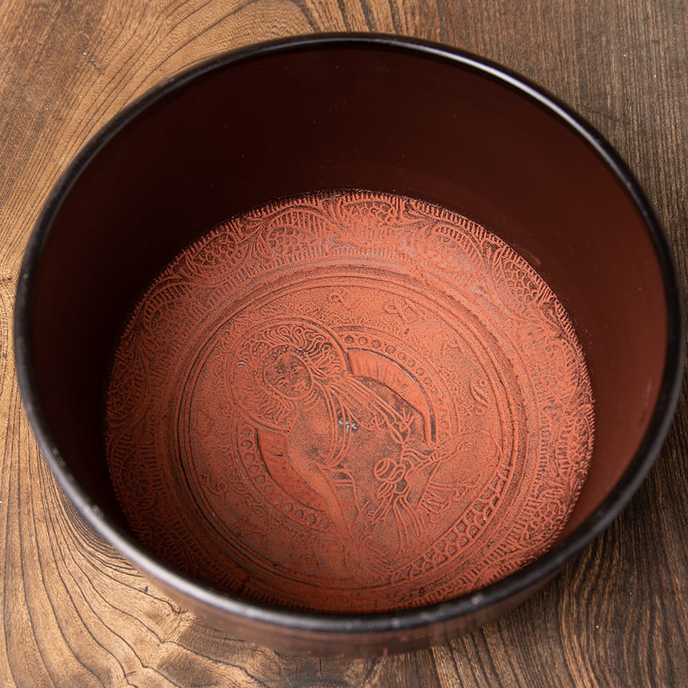 鳴らしやすさに加え特徴的なのが、味わい深い文様です。マントラや、ロータス、ガンター、シュリーヴァスタなどに加え、ブッダなどが美しく彫られています。全ての柄をご覧いただけるよう、写真に収めておりますので、是非御覧くださいませ。音色だけではなく、視覚的にも楽しく癒してくれる一品です。■シンギングボウルの鳴らし方について■