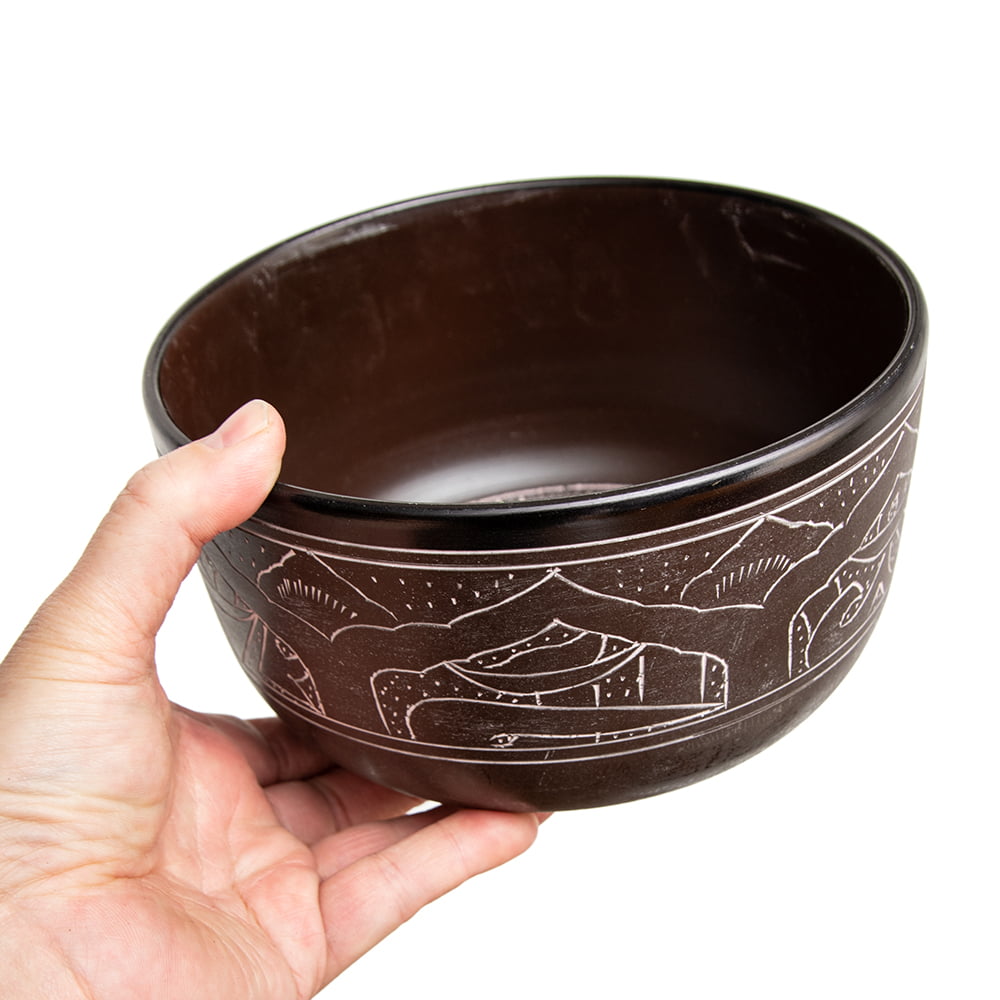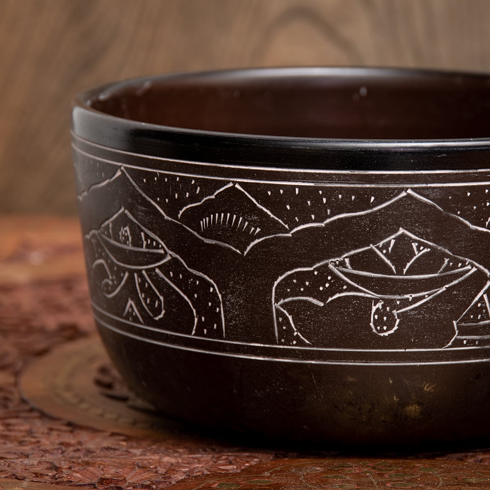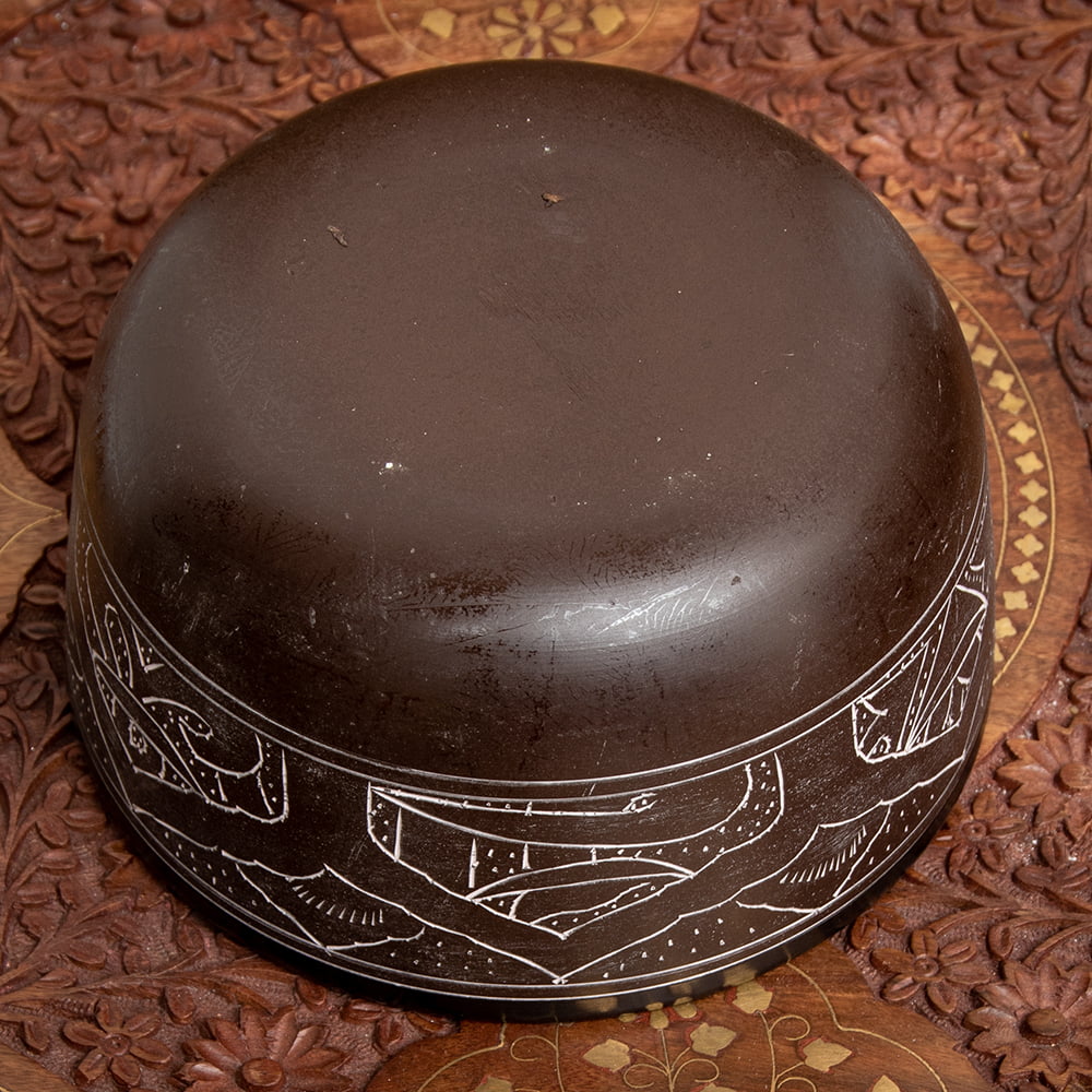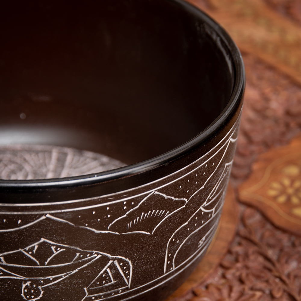 鳴らしやすさに加え特徴的なのが、味わい深い文様です。マントラや、ロータス、ガンター、シュリーヴァスタなどに加え、ブッダなどが美しく彫られています。全ての柄をご覧いただけるよう、写真に収めておりますので、是非御覧くださいませ。音色だけではなく、視覚的にも楽しく癒してくれる一品です。■シンギングボウルの鳴らし方について■