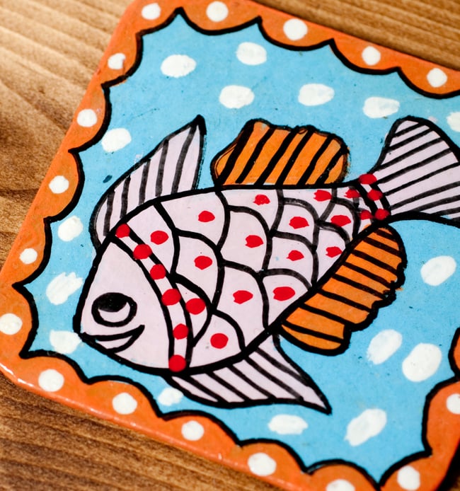 | 【備考】 | こちらのコースターは、一つ一つミティラーの人たちが描いて作っています。その為、色合いの違いや模様などがそれぞれ異なっております。予めご了承いただけますと幸いです。 |