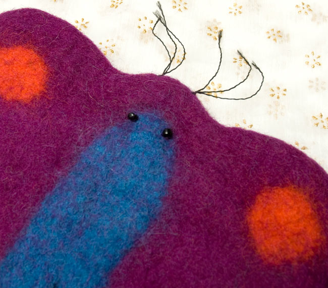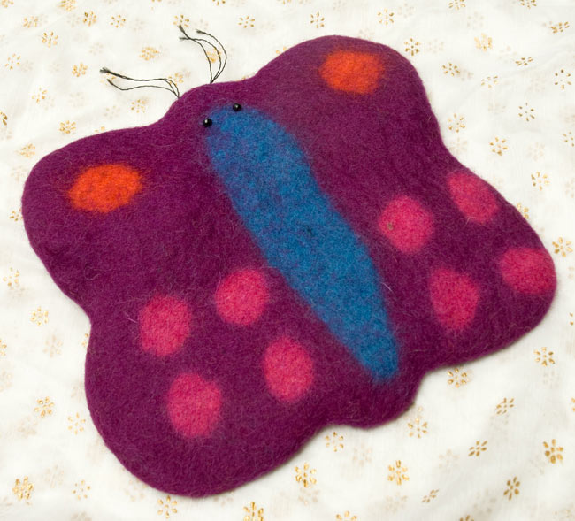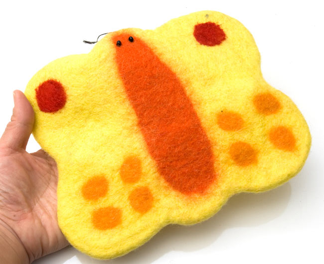 ちょうちょの形も色も見た目通りで手作りのフェルトがモコモコ手に優しい感じです。